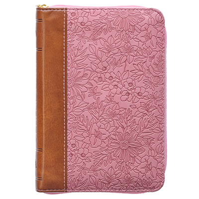 Home » Books » KJV Holy Bible, Mini Pocket Size, Faux Leather Red Letter Edition - Ribbon Marker, King James Version, Pink/Saddle Tan, Zipper Closure