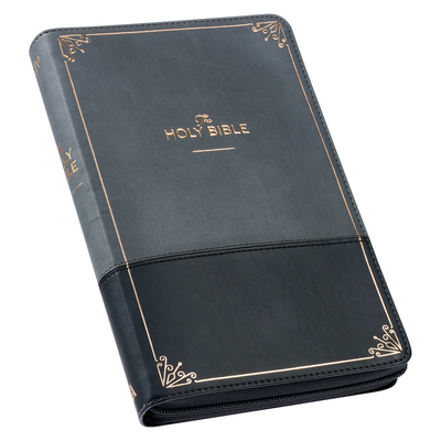 Home » Books » KJV Holy Bible Standard Size Faux Leather Red Letter Edition Thumb Index & Ribbon Marker, King James Version, Gray/Black, Zipper Closure