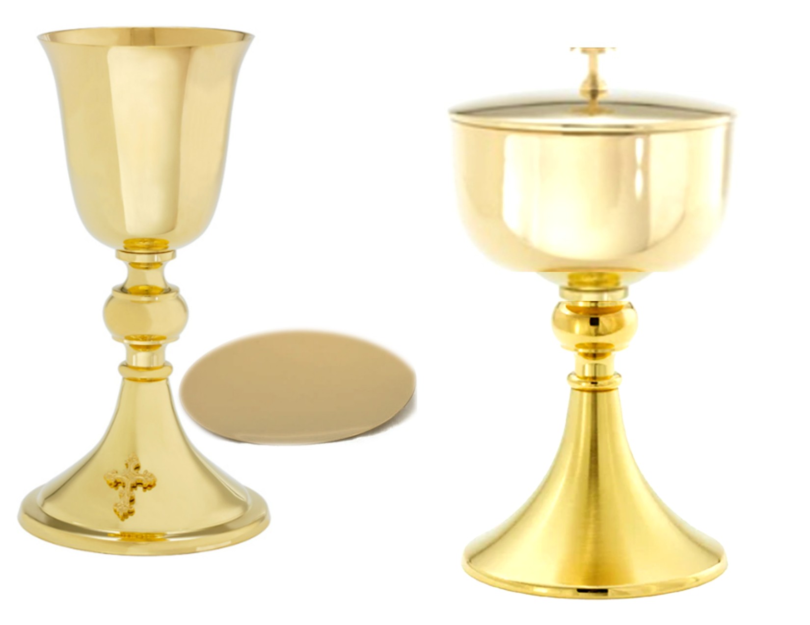 Simple and Classic Ciborium. Ciborium has a height of 9 3/8", and holds 175 hosts. Image may differ slightly from item. Chalice, sold separately (A-192G).
