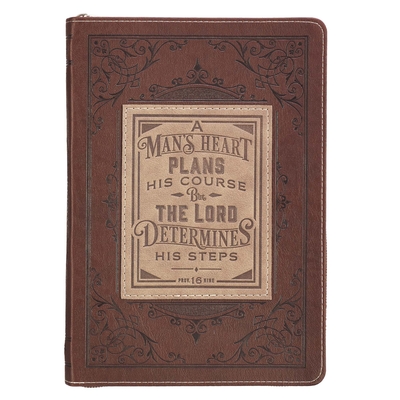 Home » Gifts Of Faith » Classic Faux Leather Journal a Man's Heart Proverbs 16:9 Bible Verse Brown Inspirational Notebook, Lined Pages W/Scripture, Ribbon Marker, Zipper Clos