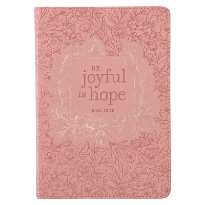 Christian Art Gifts Classic Journal Joyful in Hope Romans 12:2 Inspirational Scripture Notebook, Ribbon Marker, Pink Gold Floral Faux Leather Flexcove |