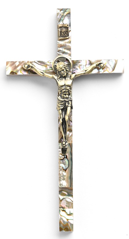This beautiful wall cross is made from green mother of pearl measures 6". It makes a perfect gift for Baptism, First Holy Communion, Marriage/Wedding, or any occasion.